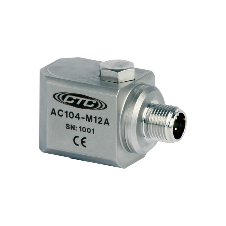 CTC AC104系列振動傳感器,通用型,100 mV/g靈敏度,量程±50 g,頻響0.5-15000Hz,316L不銹鋼外殼材質,4針M12連接器出線